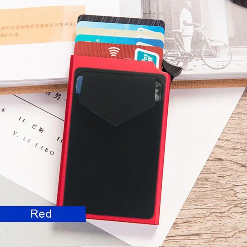 Выдвижной RFID-бумажник, тонкий алюминиевый бумажник, эластичный чехол для задней панели, блокирующий ID кредитную карту, защитный дорожный держатель для удостоверения личности