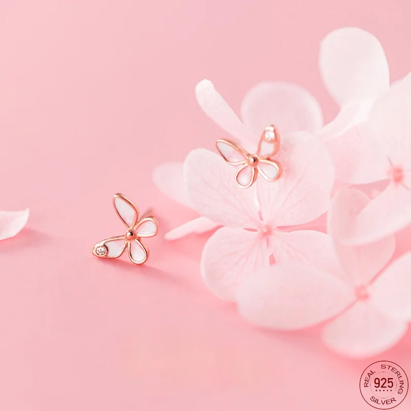 Женские серьги-гвоздики с розовой бабочкой WANTME, 100% Стерлингово...