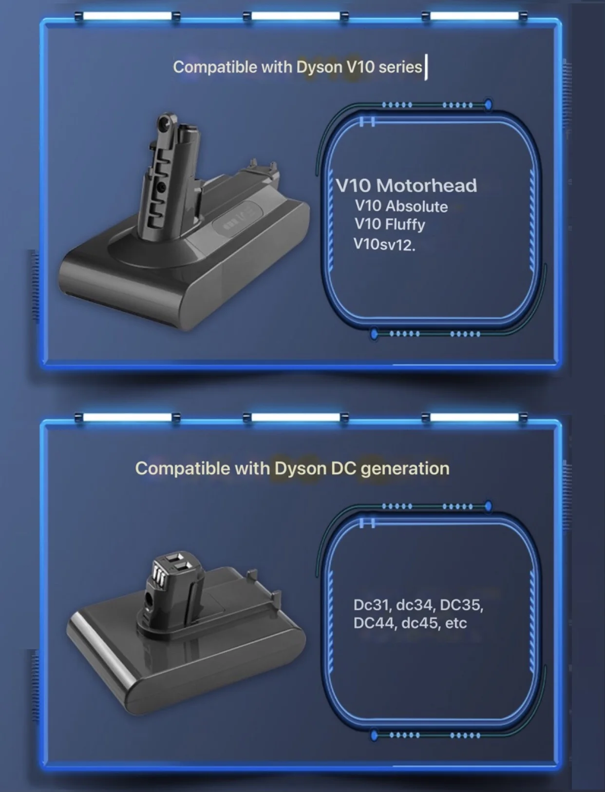 Для пылесосов Dyson V6, V7, V8, V10 аккумуляторы, совместимы с DC62...