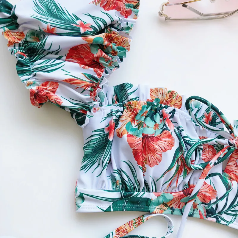 Однотонный купальник-бандо с оборками и принтом для женщин, комплек...