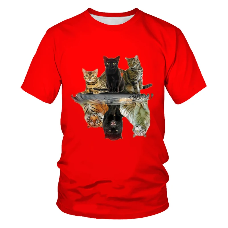 Летние модные новые футболки, для мужчин и детей, с 3D принтом любовных кошек, Повседневные Дышащие Топы с коротким рукавом