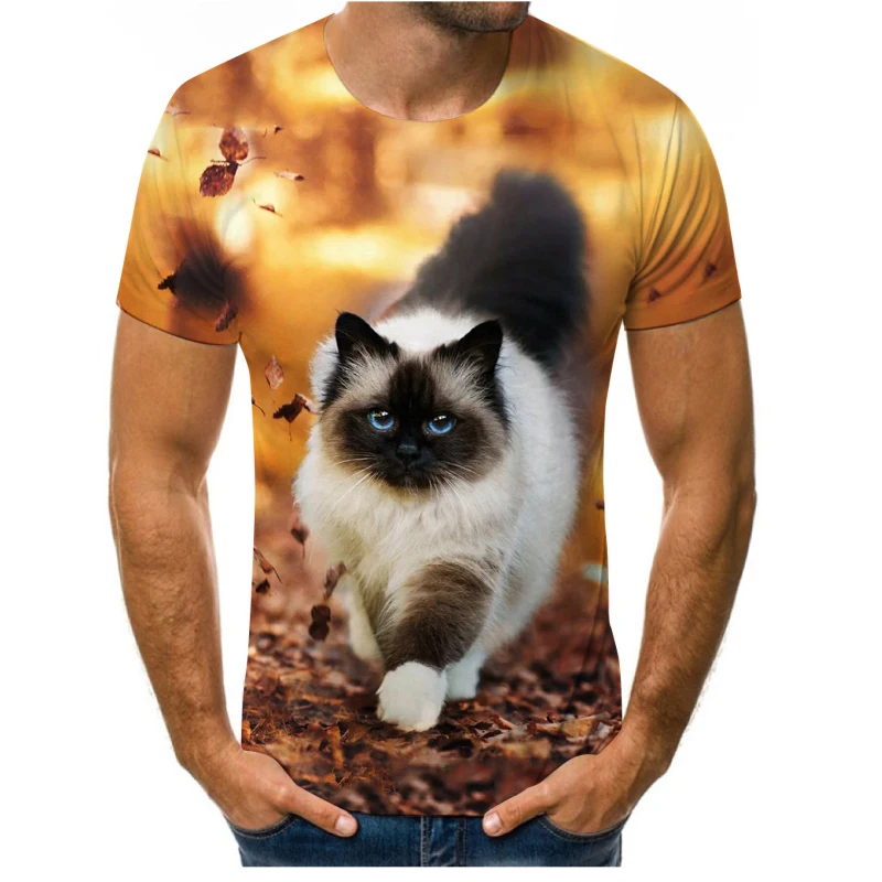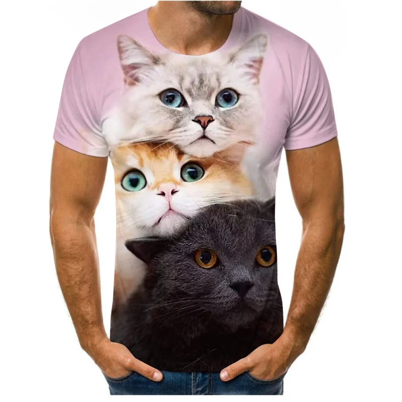Футболка Мужскаяженская с 3D-принтом кота, забавный топ с коротким ...