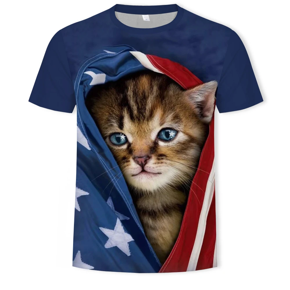 Новый 2021 3D, футболка с принтом в виде кота для мужчинженская лет...