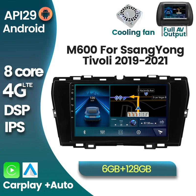 Автомагнитола 6G + 128G Android 10 DSP IPS, мультимедийный проигрыватель с GPS для SsangYong Tivoli 2019-2021stereo, навигация с carplay 4G WIFI