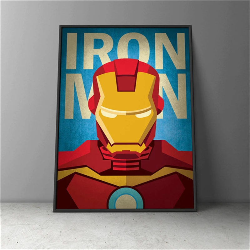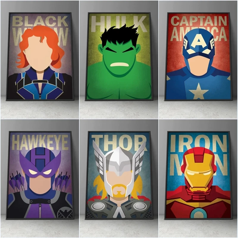 Постеры в стиле ретро с изображением супергероев Marvel, картина, Человек-паук, капитан Железный человек, холст, постер, настенное искусство, картина для гостиной, домашний декор