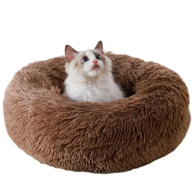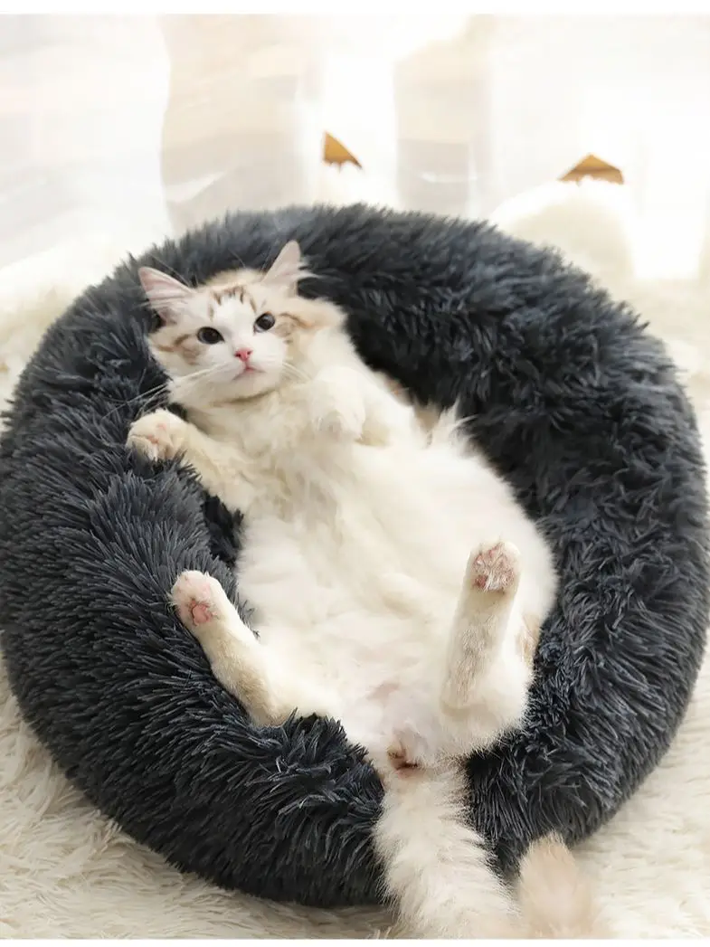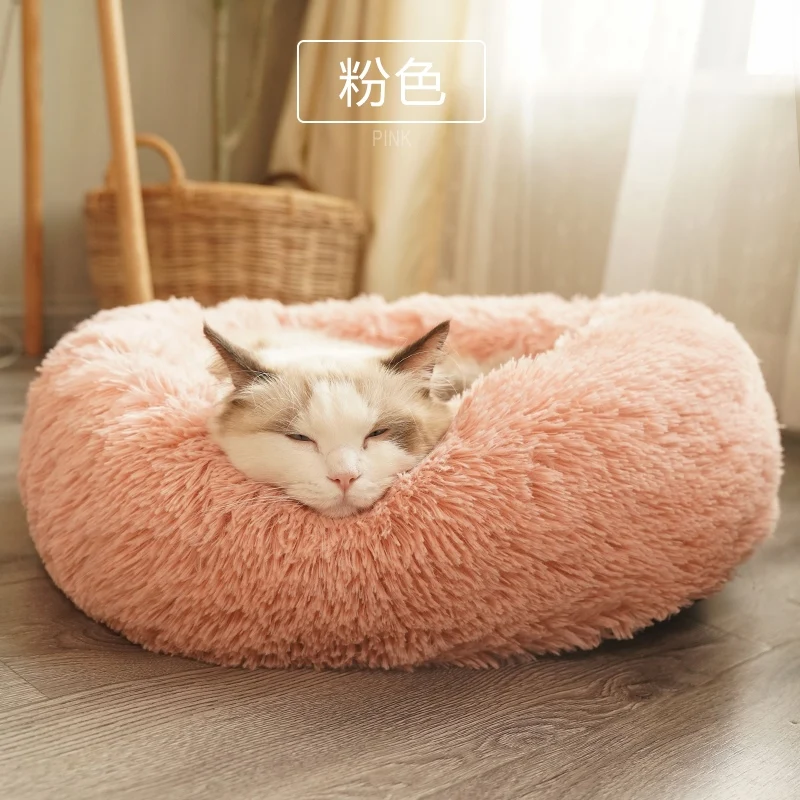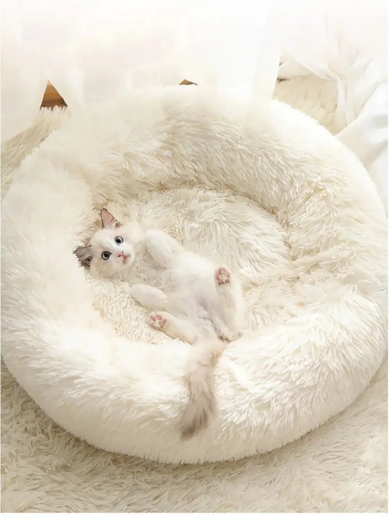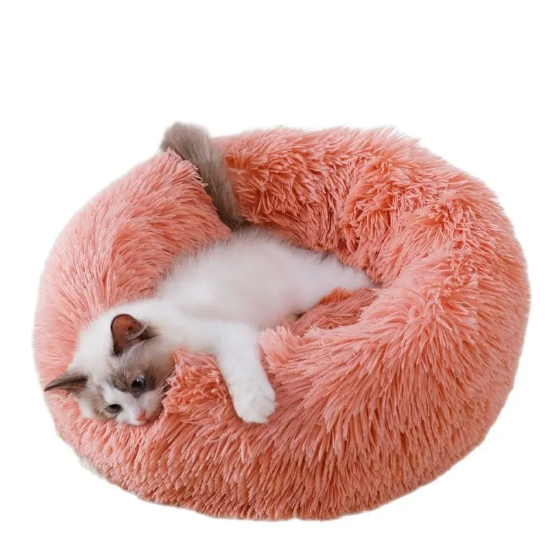 Супермягкая кровать для домашних животных, зимний теплый домик для сна, собаки, кошки, Конура, собака, круглая кошка, длинная плюшевая подушка для щенка, коврик, портативные принадлежности