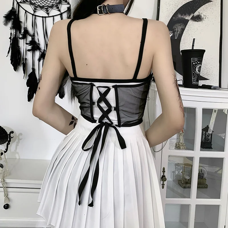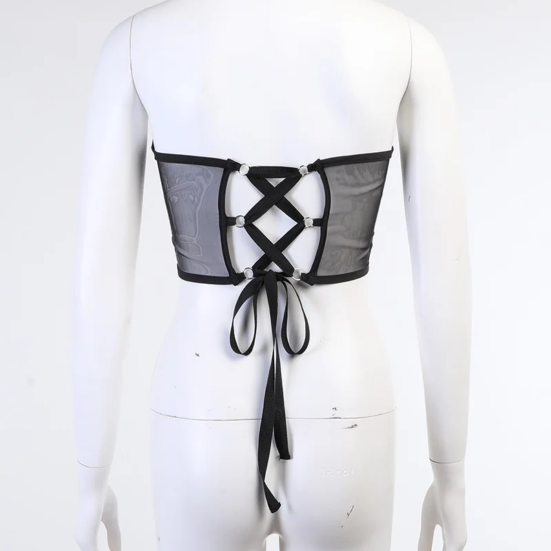Корсет женский в стиле панк, модный прозрачный сетчатый корсет с за...