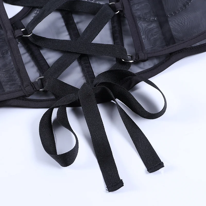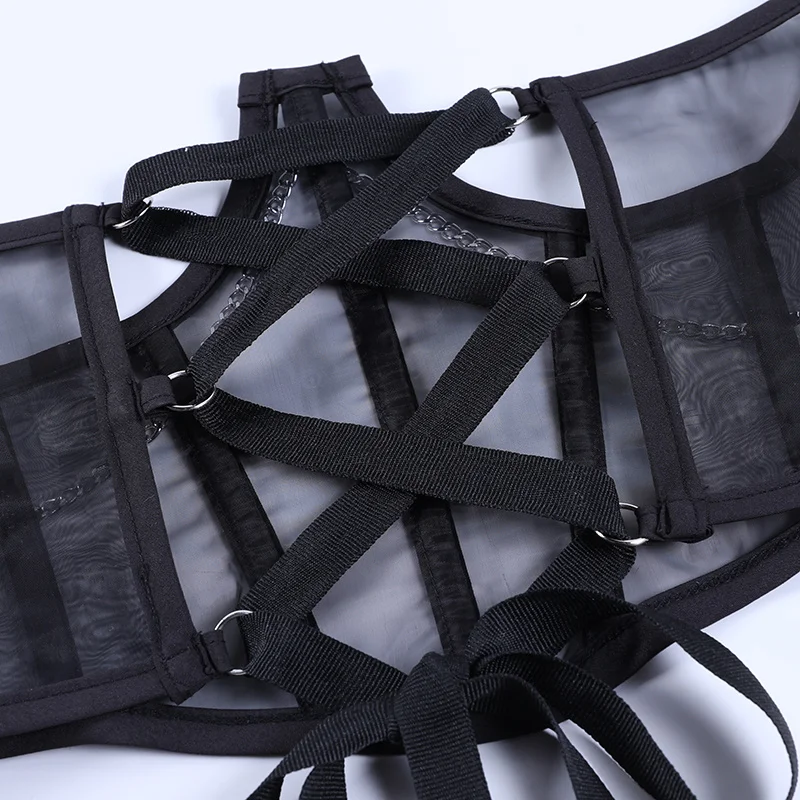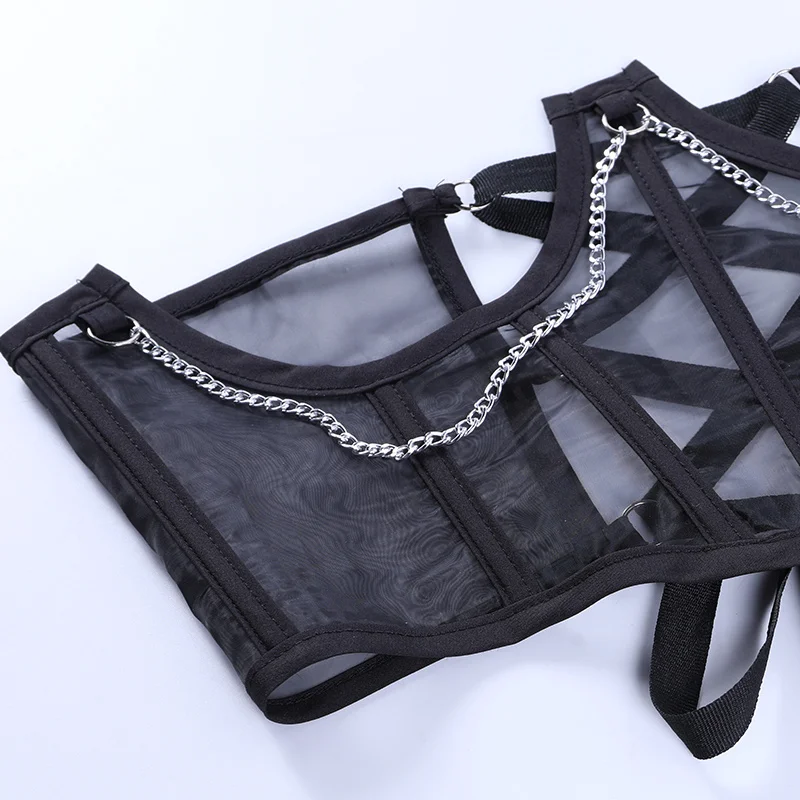Женский сетчатый укороченный корсет с металлической цепочкой