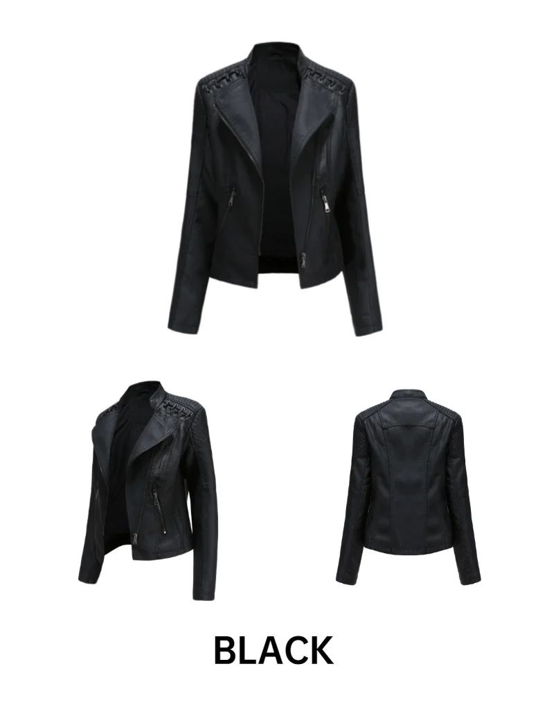 Куртка женская из искусственной кожи, на молнии, с воротником-стойкой
