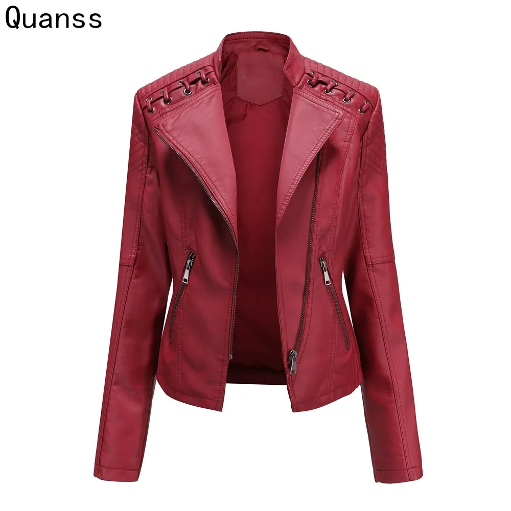 Куртка Quanss женская из искусственной кожи, модный Байкерский короткий пиджак из искусственной кожи, роскошная Повседневная Верхняя одежда, весна-осень 2021