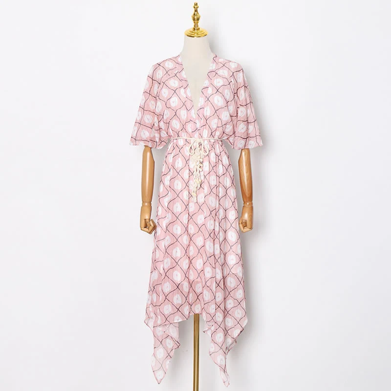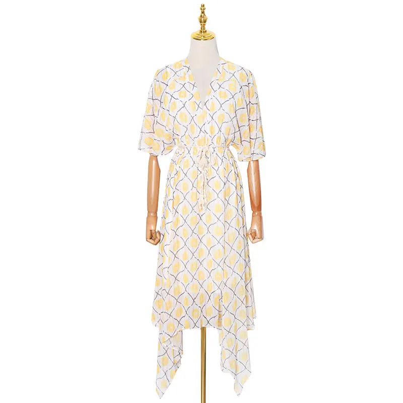 Женское шифоновое платье с принтом XITAO, повседневное Свободное платье с v-образным вырезом и асимметричным подолом CLL1488