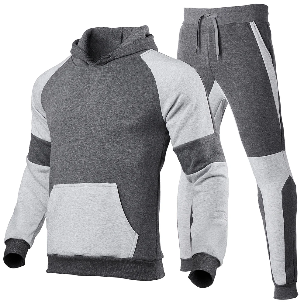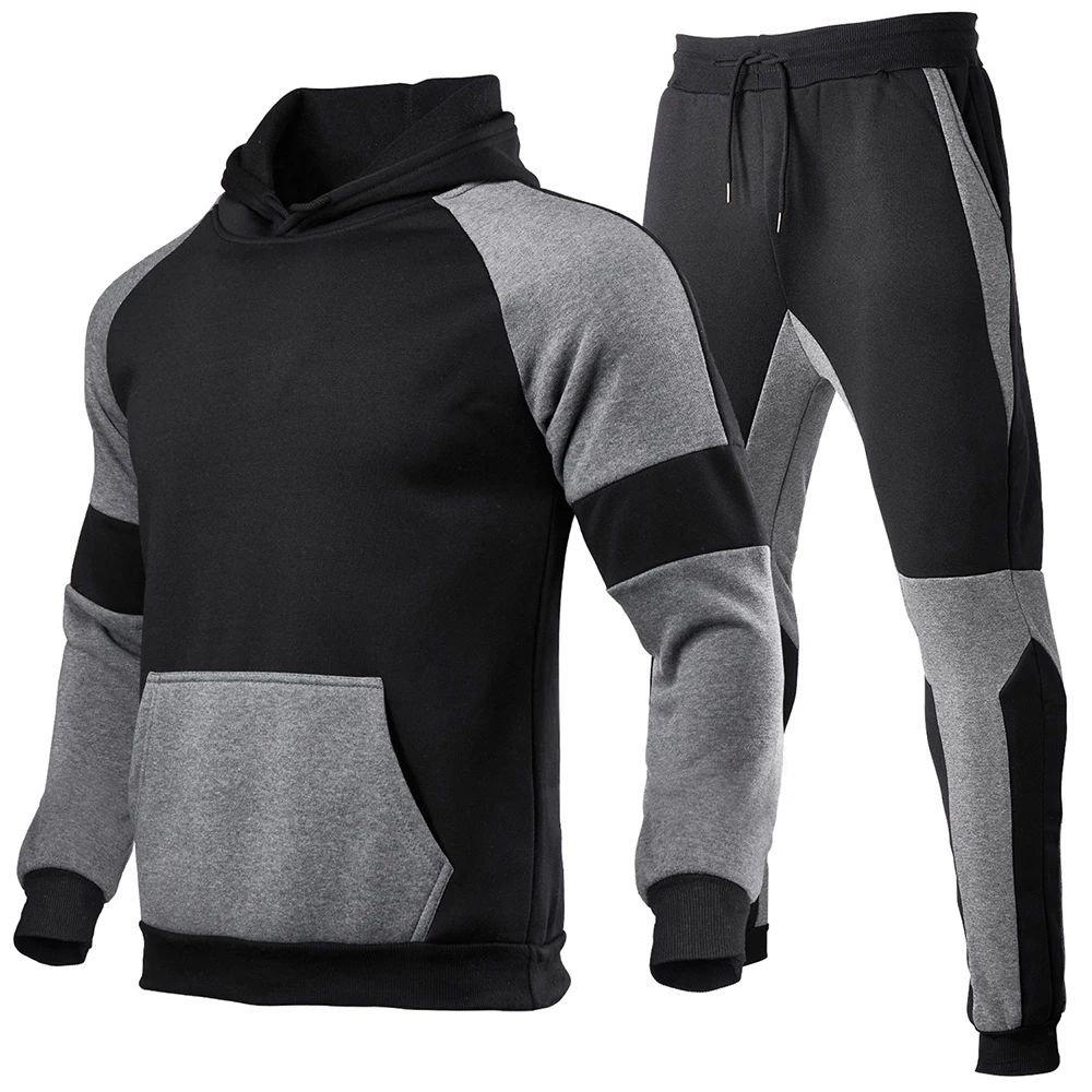 Новинка Осень-зима 2021, мужской комплект с капюшоном, горячая распродажа, Модный комплект из 2 предметов с лоскутной головкой, спортивная одежда для отдыха и фитнеса для мужчин