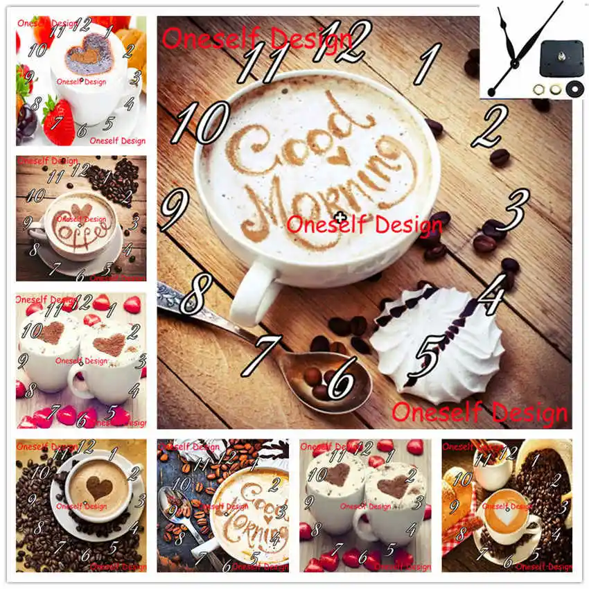 2021 Алмазная вышивка полный кофе алмазов картина с механические часы Алмазная мозаика по доступной цене, украшение дома Наклейка на стену