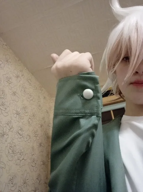 боже! даже маленькие полупрозрачные пуговки нарисовали! всё шикарно! вот только краска слезла с майки уже на 2 день ношения. но всё остальное сделано очень точно. но вопрос, в оригинале у нагито тоже такая пуговица на руке была? просто я учила полностью костюм нагито пол года назад и уже точно не помню была она или нет. если это читает человек который хочет заказать но заказывай, рил круто