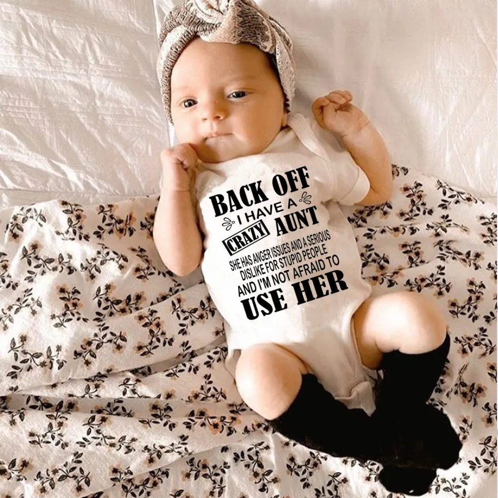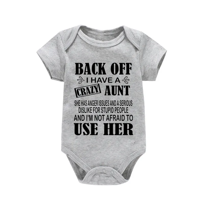 Сзади у меня с ума тетей с принтом; Одежда для малышей; Одежда для мальчиков и девочек хлопковая футболка с короткими рукавами, Детский костюм для новорожденных, комбинезон