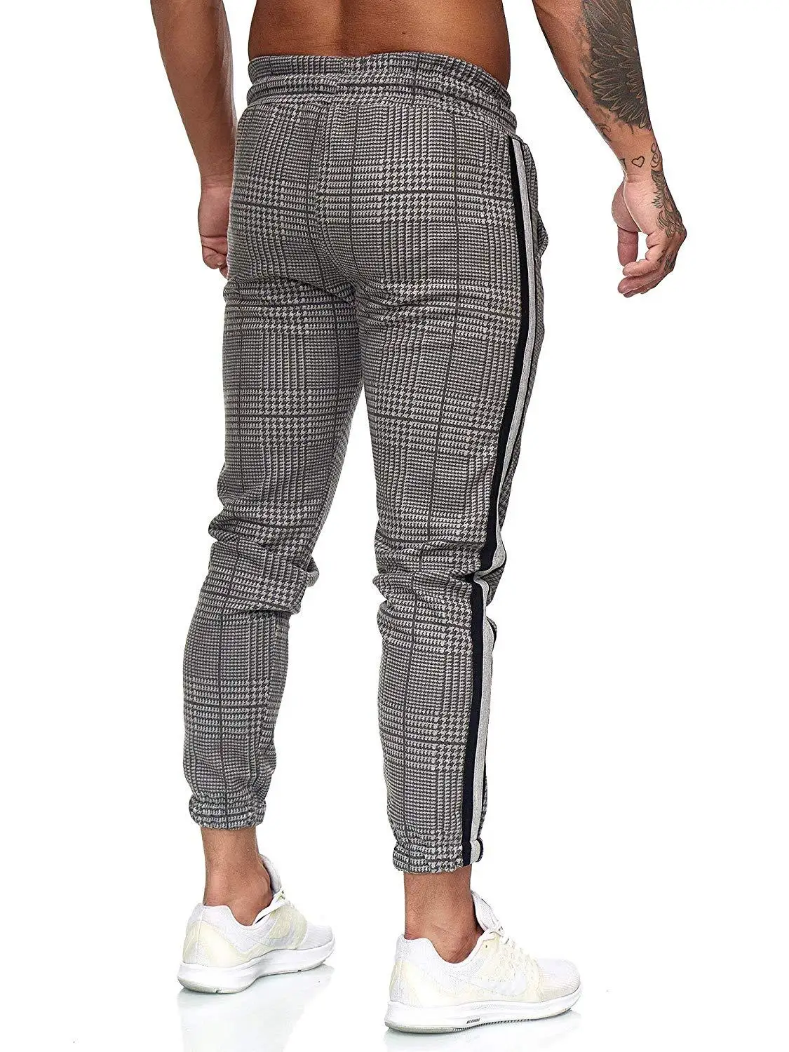 Мужские облегающие брюки в клетку с боковой полосой, обтягивающие б...