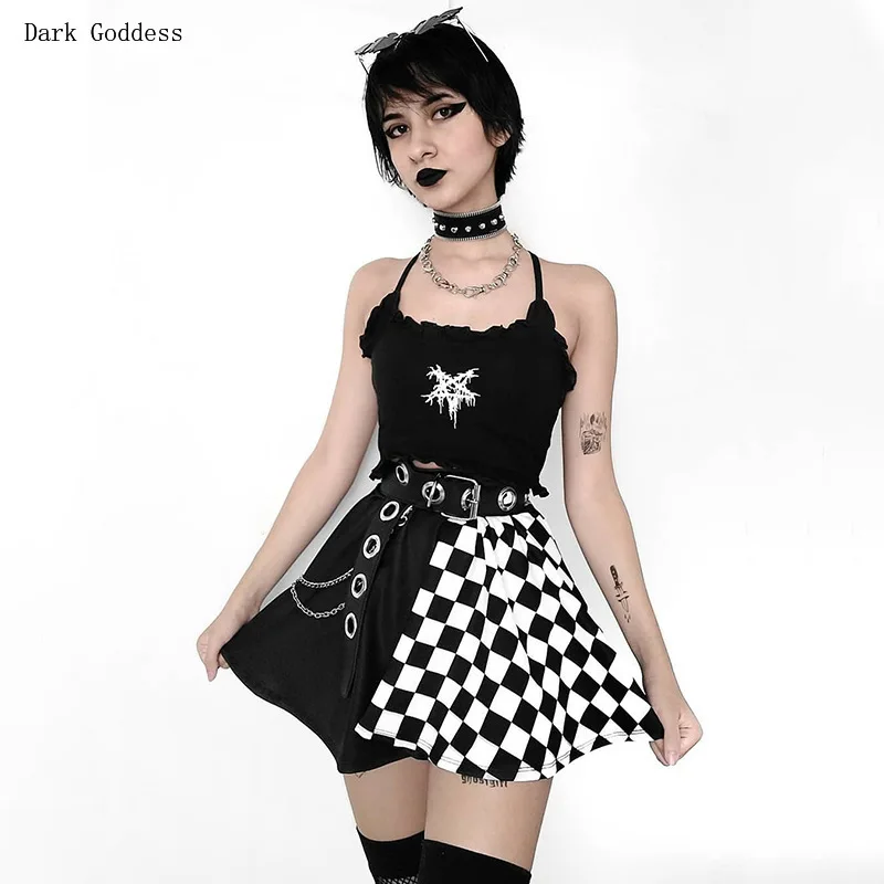 Мини-юбка клетчатая трапециевидная в готическом стиле, Y2K