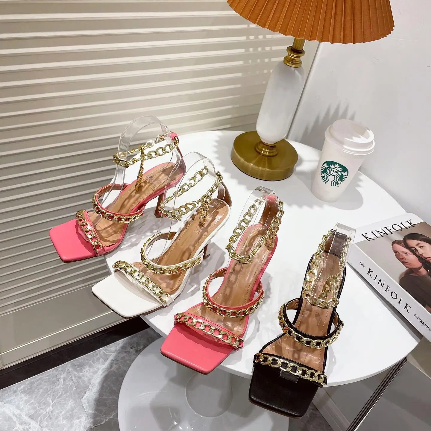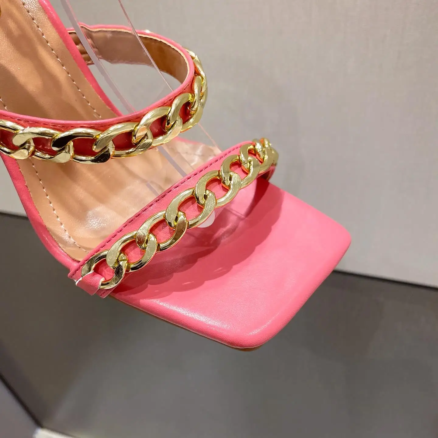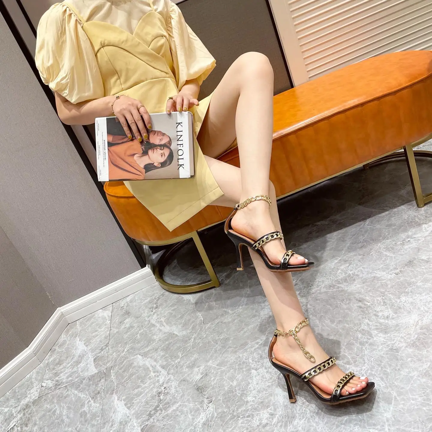 Женские босоножки на высоком каблуке-шпильке, с металлической цепоч...