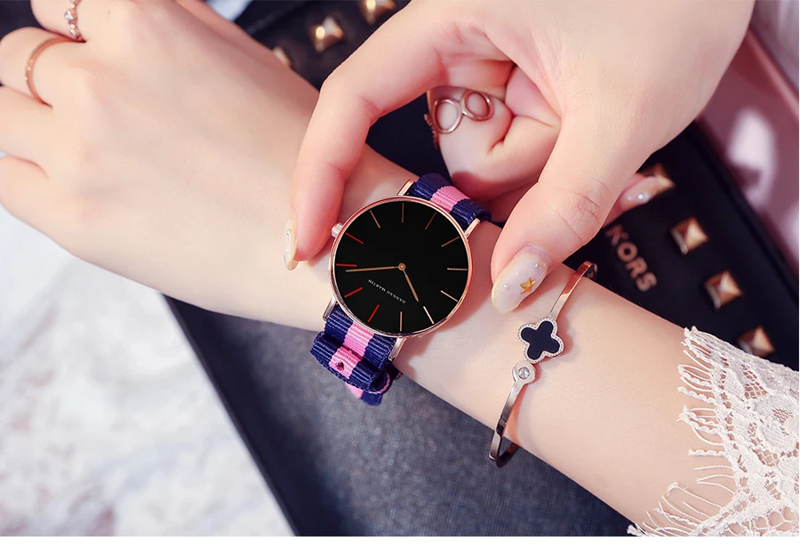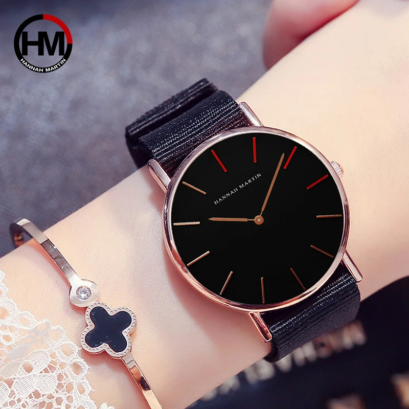Часы наручные женские с японским кварцевым механизмом, черные дизайнерские водонепроницаемые с нейлоновым ремешком, розовое золото, 36 мм, 2021