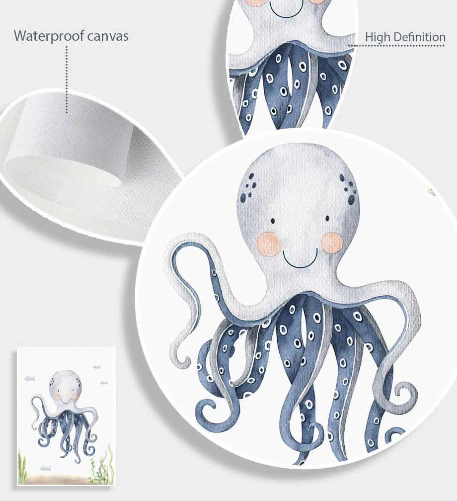 Морской Кит, дельфин, осьминог, морская жизнь, настенная Картина на...