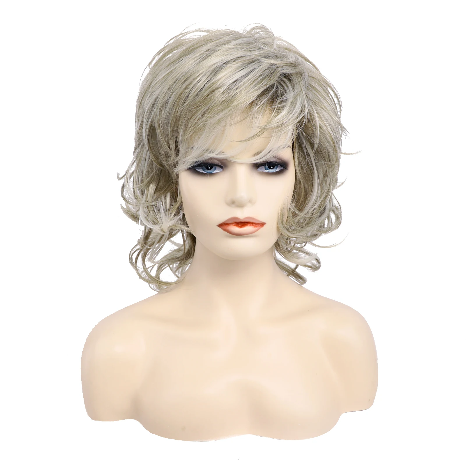 Amir короткий вьющийся парик, синтетические волосы, парики, золотой смешанный цвет, блонд для женщин с боковой челкой, косплей, ежедневное использование
