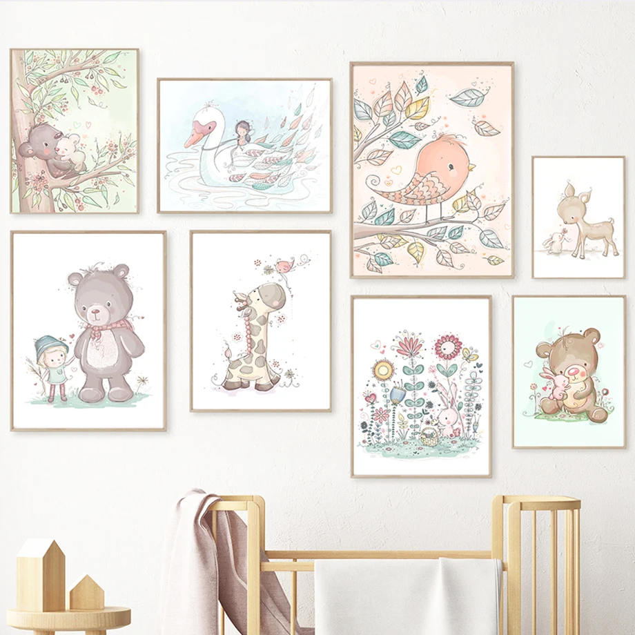 Слон жираф коала лев кролик на заказ настенное Искусство Холст Карт...