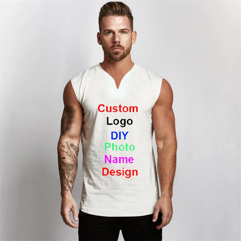 Бренд логотип на заказ DIY печать v-образный вырез хлопок Спортивная одежда Мужская тренировка без рукавов рубашка Бодибилдинг майка фитнес жилеты