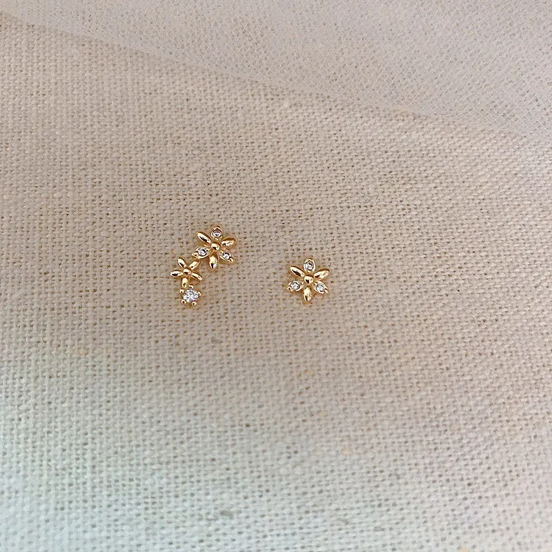 Женские асимметричные серьги-гвоздики, серьги золотого цвета с цветком из циркония, простые сексуальные изысканные ювелирные украшения, аксессуары