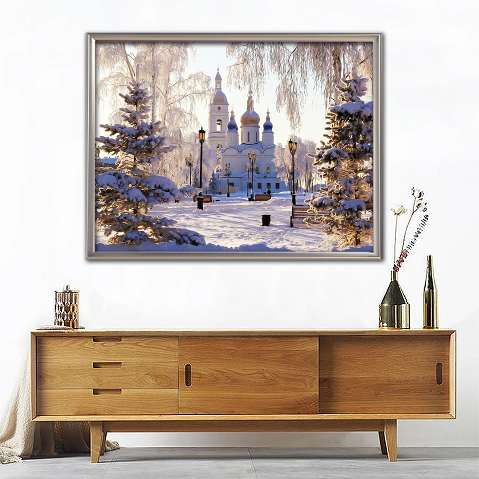 Алмазная вышивка зимний пейзаж, алмазная живопись, церковная стразы, картина, мозаика, распродажа, полный набор, украшение для дома