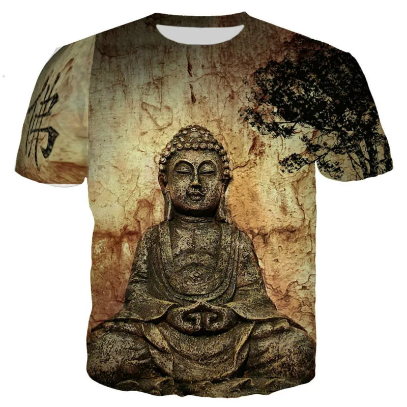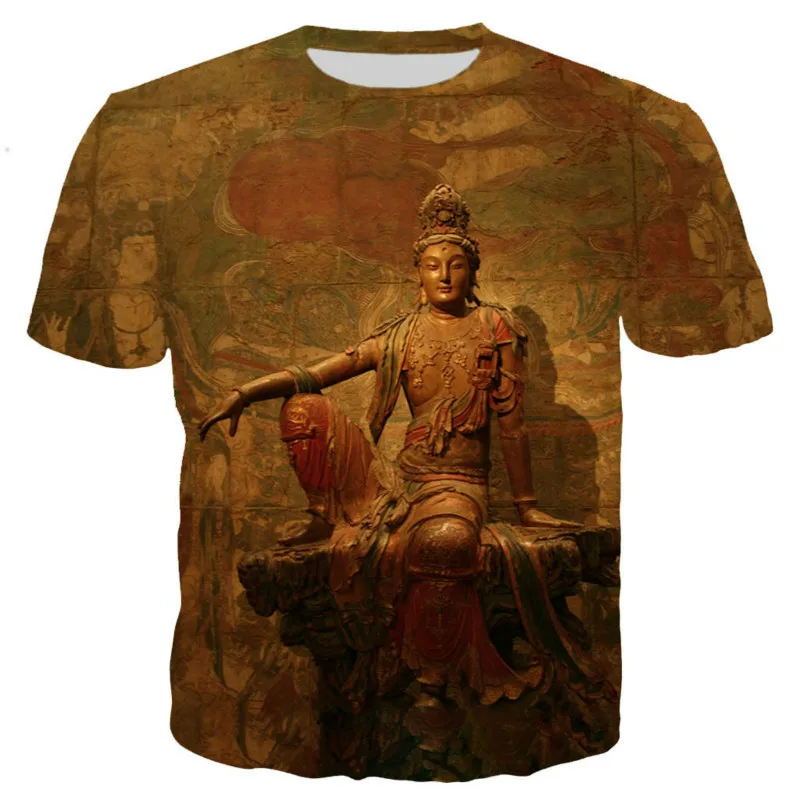 Футболка мужская с 3D принтом статуй Будды, уличная одежда в стиле ...