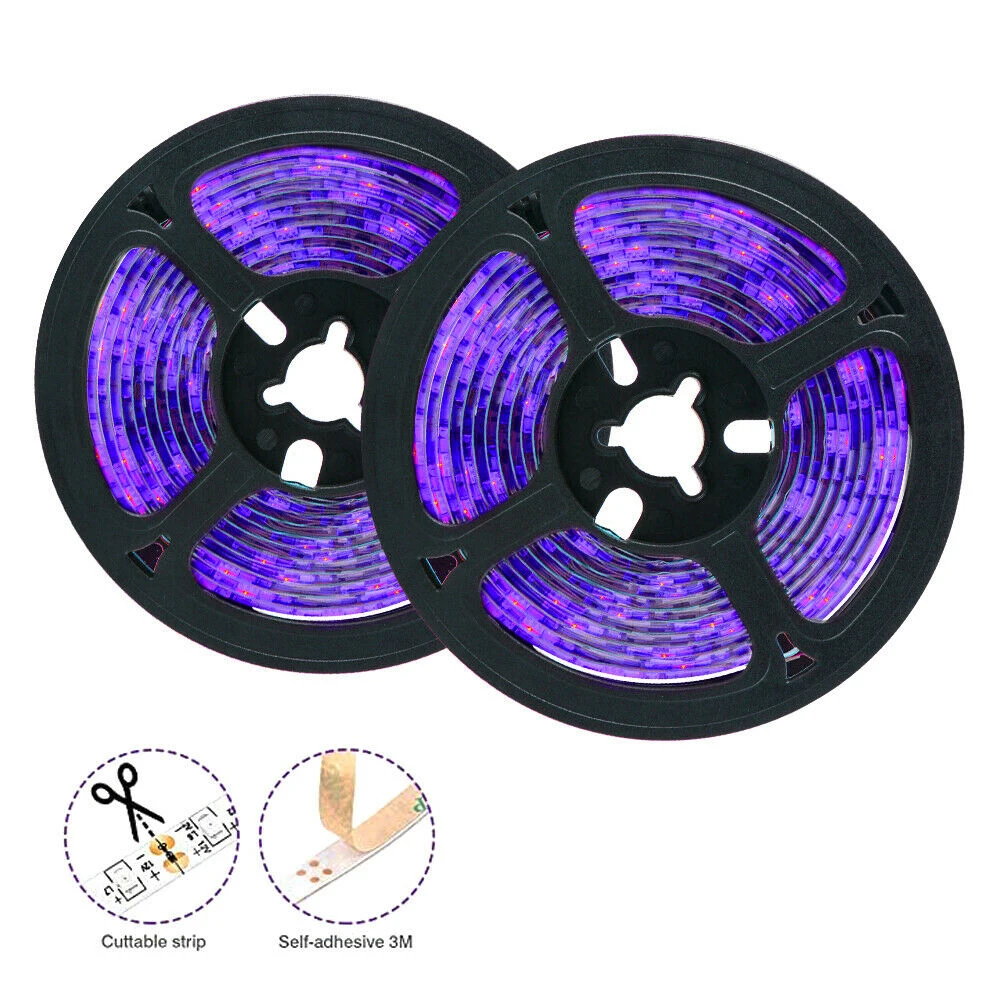 1-10 м SMD 5050 УФ светодиодная полоса освещения 60 светодиодовм УФ светодиодная полоса освещения 12 В Уфа 395-405нм диммер переключатель питания адаптер ультрафиолетового излучения диод