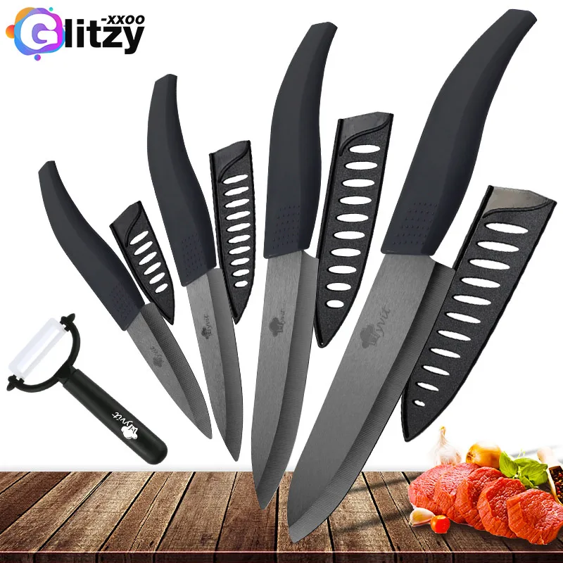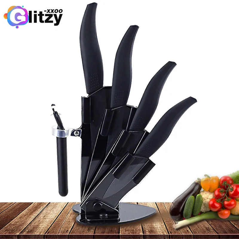 Керамический нож 3, 4, 5, 6 дюймов, циркониевый кухонный нож + Овощечистка + Набор держателей, Черное лезвие, шеф-повар, фрукты, универсальные кухонные ножи, Симпатичные