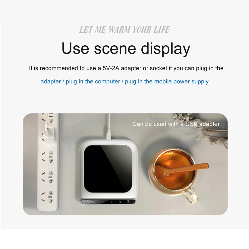 Особенности:55 ℃ постоянная температура в течение всего дня/Безопасный источник питания USBТонкая светильник Кая конструкция, нагрев PI, интеллектуальное управление, защита от сбоя питанияМожет быть подключен к мобильному источнику питания, ноутбуку, удобен для использования на открытом воздухеНебольшой размер и удобство переноскиРазмером с ладонь, тепло никогда не покинет вашу рукуХарактеристики:Название продукта: теплая белая изоляционная основаМатериал изделия: АБС/ПК/силикон/стеклоНоминальная мощность: 10 ВтВес брутто: 140 гРазмер внешней коробки: 192 мм x 174 мм x 40 ммРазмер продукта: 132x118x20 ммПосылка:1 * Мини-подогреватель для чашек с Usb-подогревателем для кофе (без чашек и других предметов)