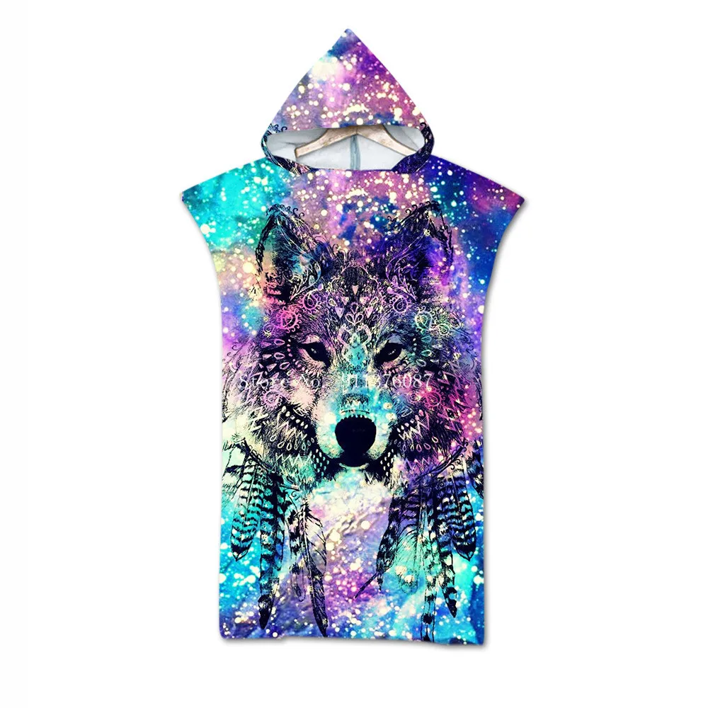 Пляжное полотенце с капюшоном и принтом из микрофибры для детей и взрослых, быстросохнущее пончо для плаща, банный Халат