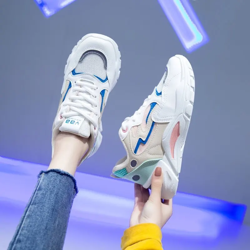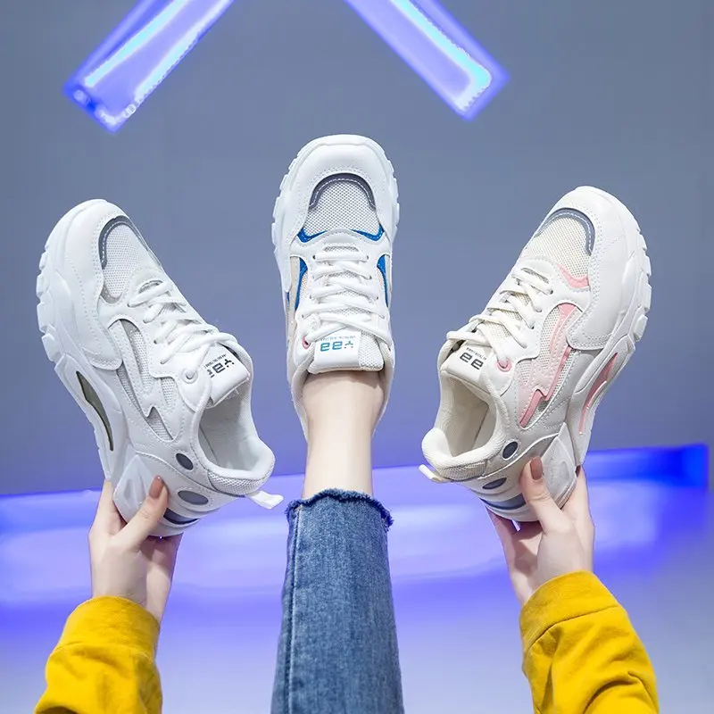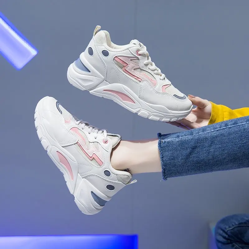 Кроссовки женские из искусственной кожи, на толстой подошве, на весну