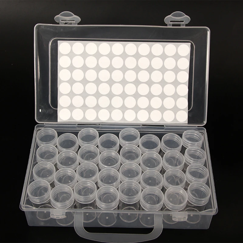 Круглая баночка для алмазной живописи, 32 баночки для хранения, аксессуары для алмазной живописи, контейнер для бусин, мозаичный ящик для хранения инструментов