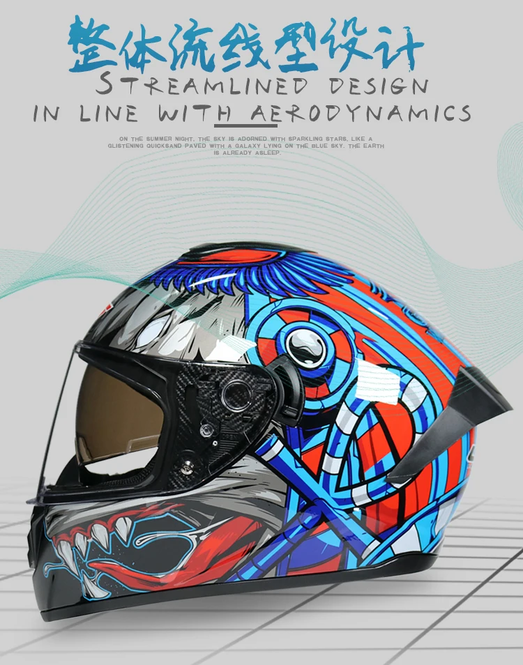 Шлем гоночный унисекс, мотоциклетный шлем на все лицо, с двойным ко...