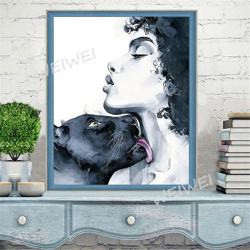5D цветок кошка девушка алмазная живопись полный квадрат круглый ст...