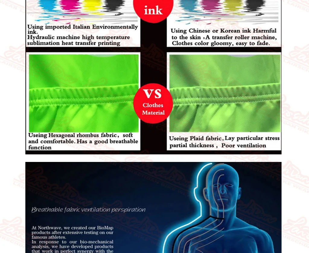 ● Быстросохнущий, дышащий и Сверхлегкий материал, в соответствии с инженерными особенностями человеческого тела, используются Подходящие материалы для сохранения сухости и комфорта.● 3D и бесшовный крой, чтобы сделать более комфортным и подходящим ..● Качественная молния работает плавно, чтобы предотвратить Застревание и трещину.● Веломайка изготовлена из дышащей сетчатой ткани из полиэстера, делает ее более дышащей и удобной.● Есть 3 кармана на спине для хранения ценных вещей● Использование итальянских киянских чернил для печати и изготовления велосипедной одежды, имеет яркий цвет и никогда не выцветает.