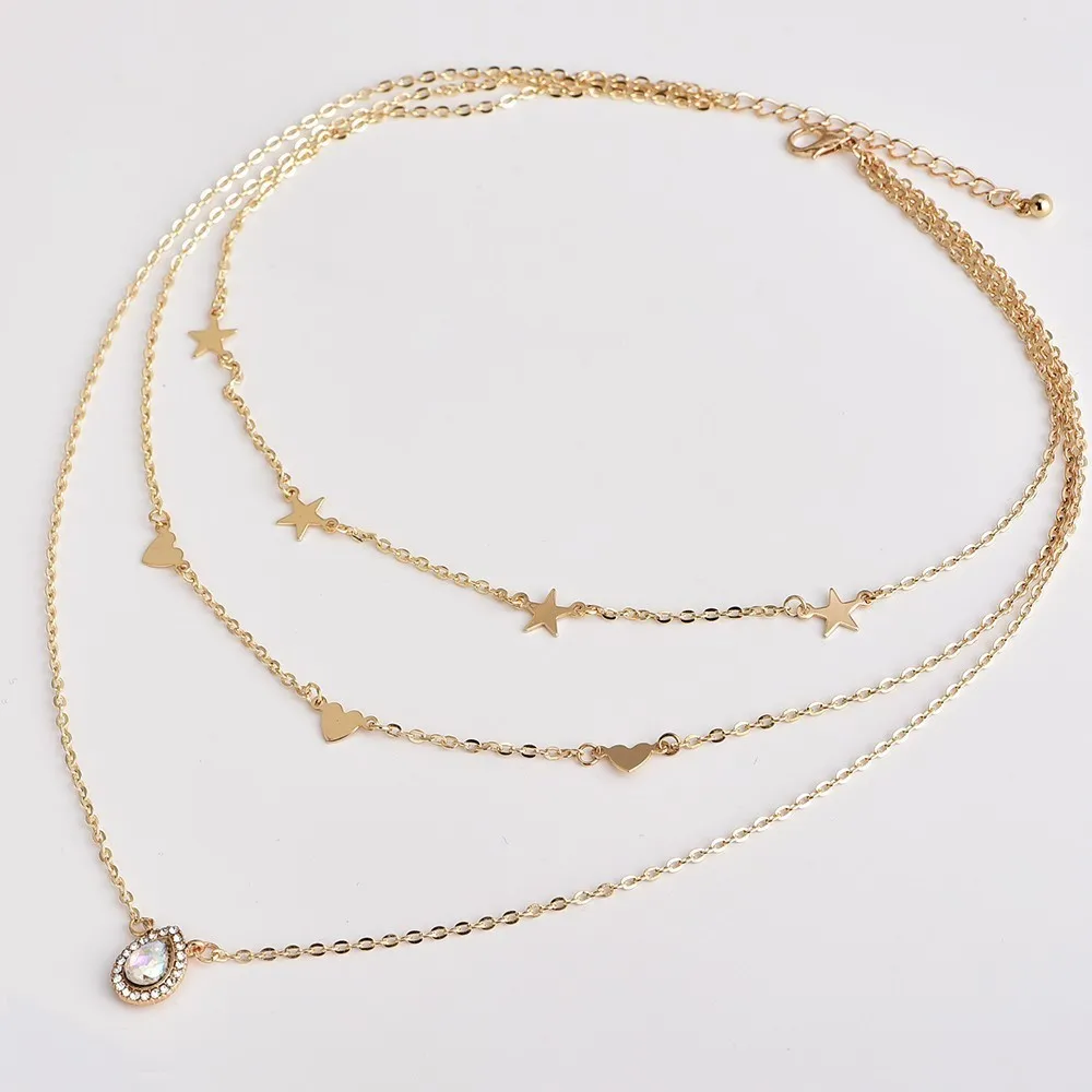 Ожерелье женское, многослойное, винтажное, с золотой звездой