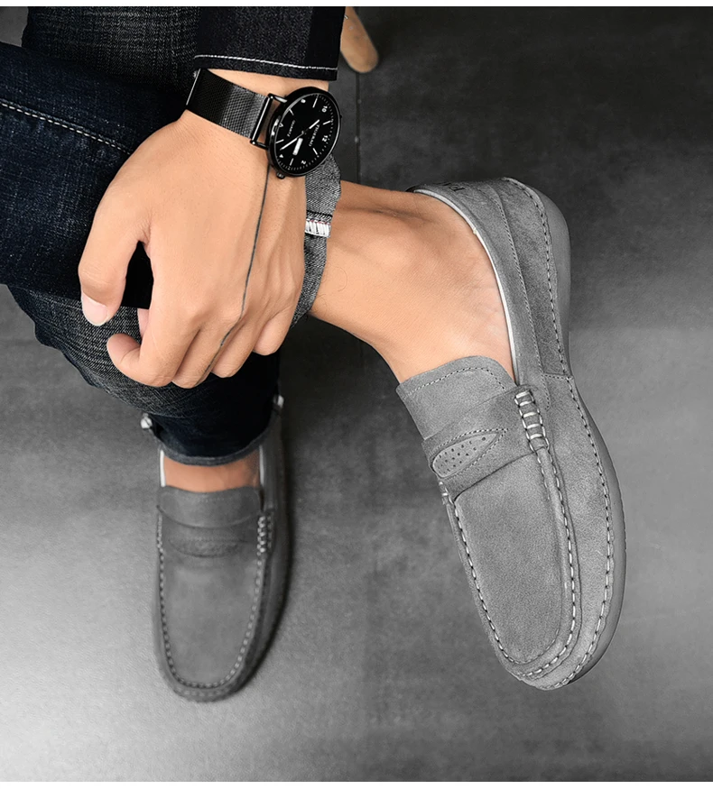 Размера плюс женские туфли из замши, повседневная обувь, мужская обувь с защитой от скольжения; Мягкие лоферы; Мокасины; Дышащая обувь; Слипоны для улицы; На нескользящей подошве, Мужская обувь для вождения