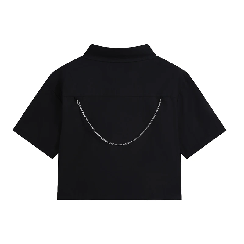 Женская блузка с коротким рукавом и металлическими цепочками в стиле панк Y2K