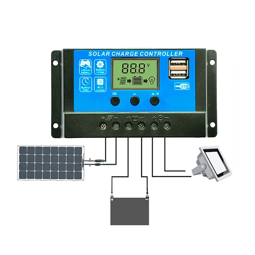 Контроллер заряда солнечной батареи, 10 А, 20 А, 30 А, 40 А, 50 А, 60 А, 12 В24 В, ЖК-дисплей, USB-выход