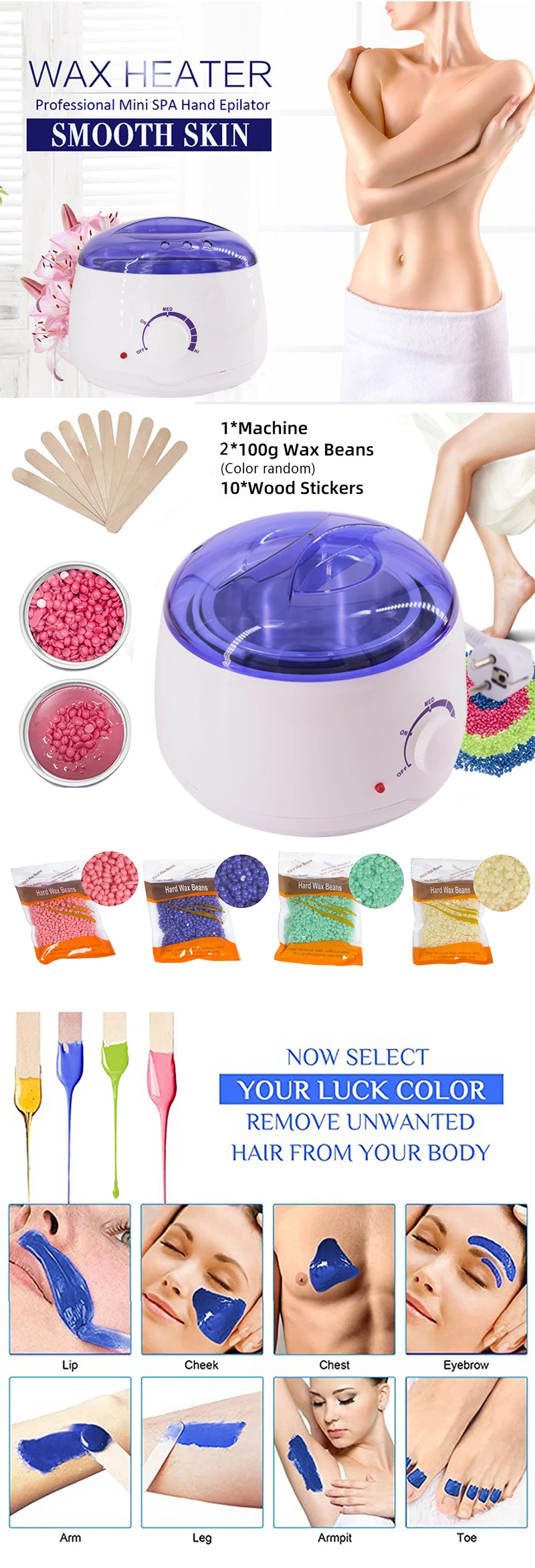 Восковая машина, нагреватель, восковая кастрюля для удаления волос, восковые бобы, деревянные наклейки, набор для восковой депиляции, эпилятор