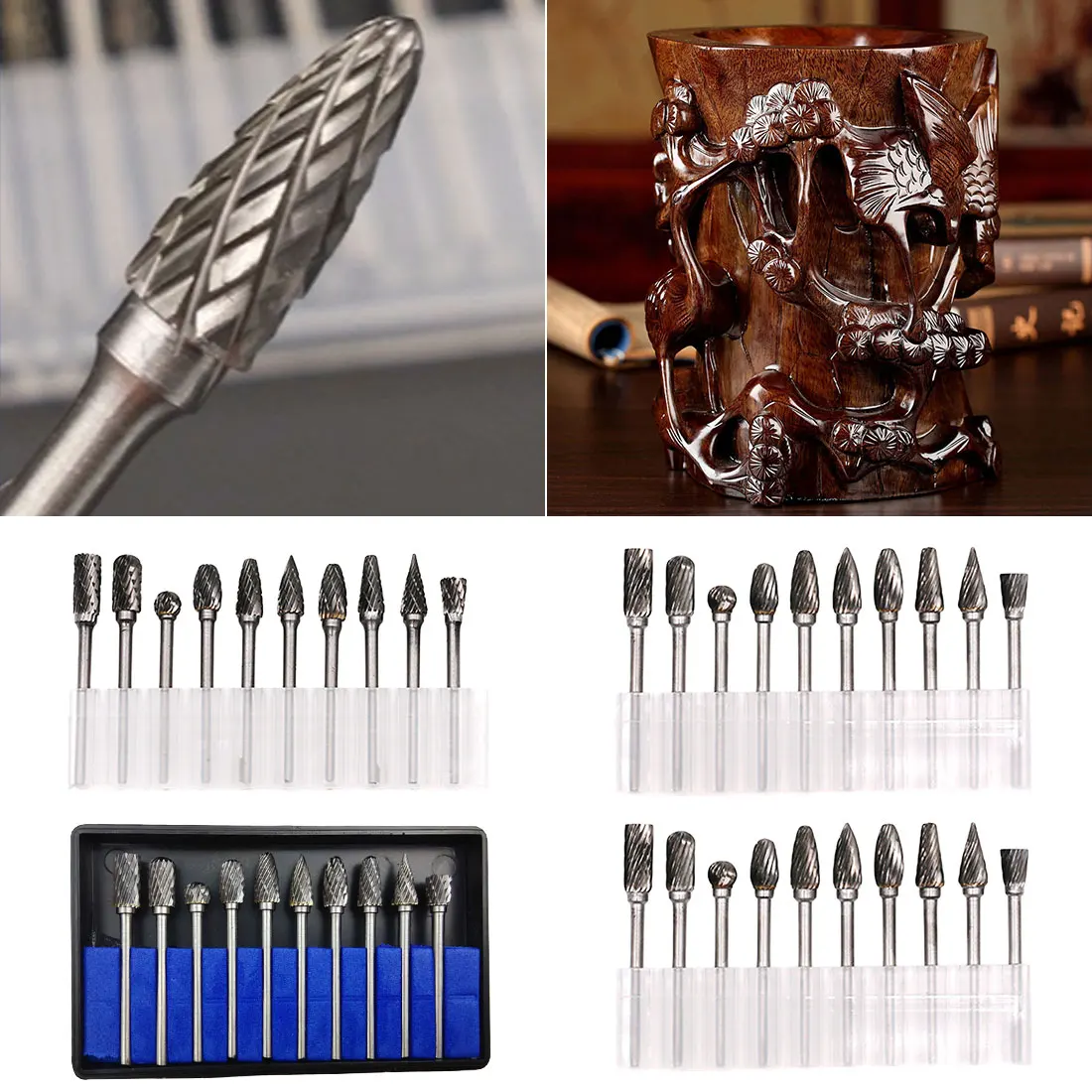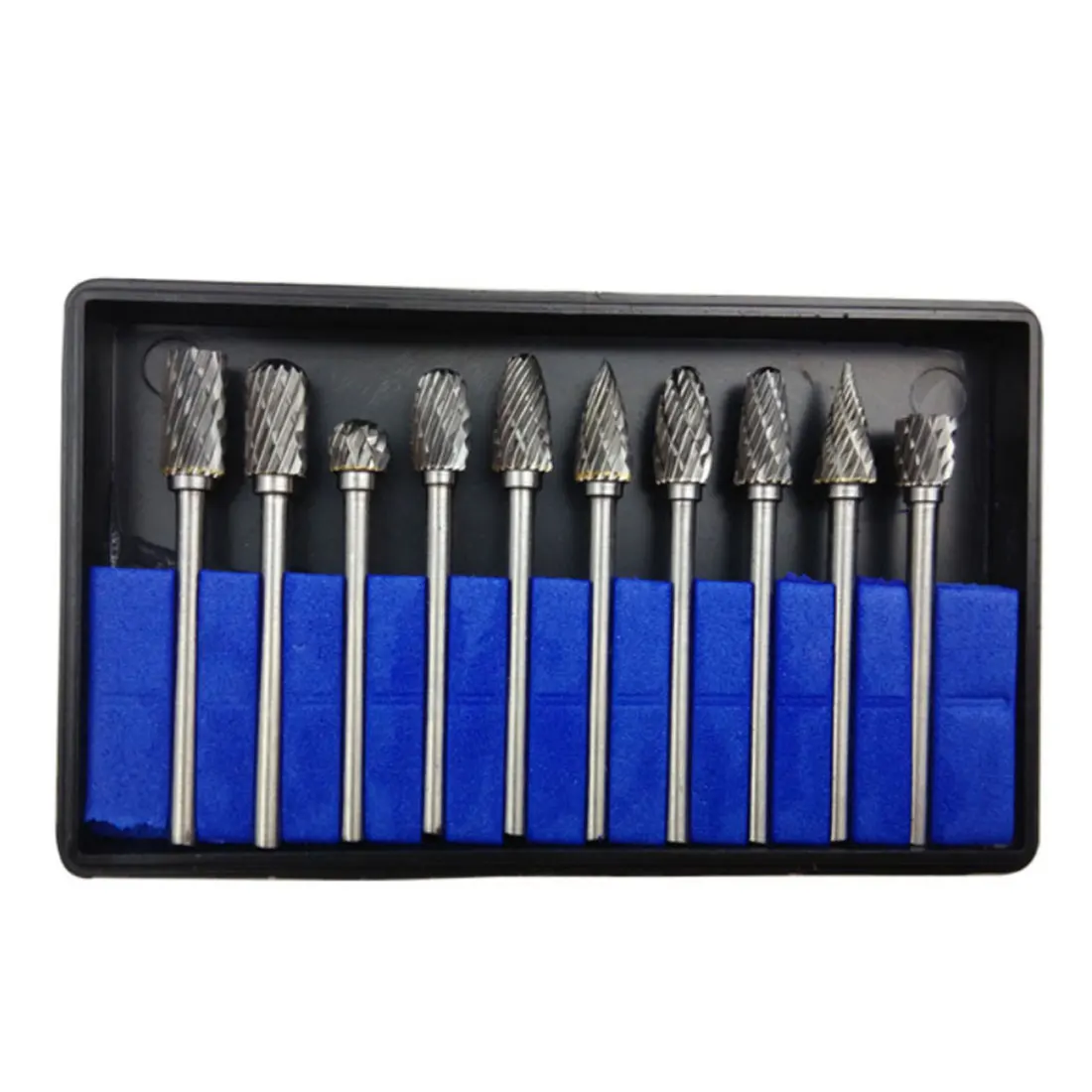 Электрический шлифовальный инструмент с хвостовиком 18 дюйма, 10 шт., фреза с двумяодинарными слотами, роторный дремель, фреза из карбида вольфрама