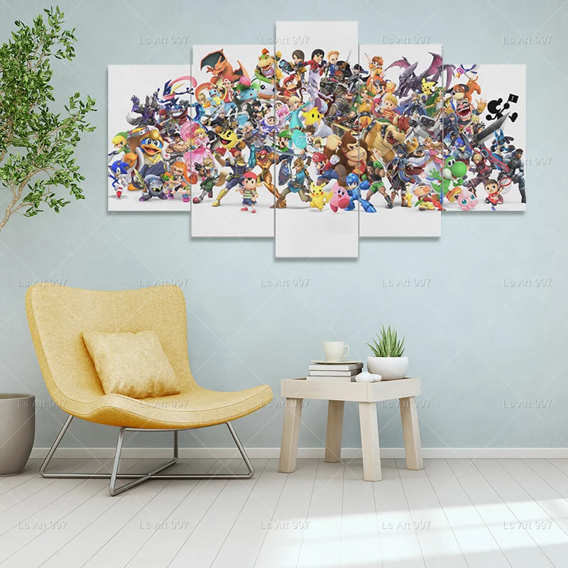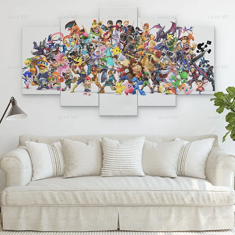 HD 5 панель аниме цельный плакат Луффи холст живопись роспись Совре...