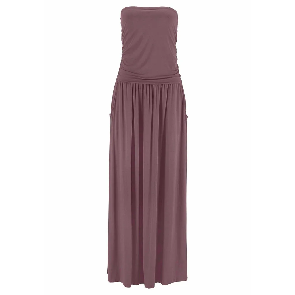 Женское праздничное длинное платье-бандо с открытыми плечами, повседневное дышащее Однотонное Платье макси с карманами и поясом, плиссированные платья