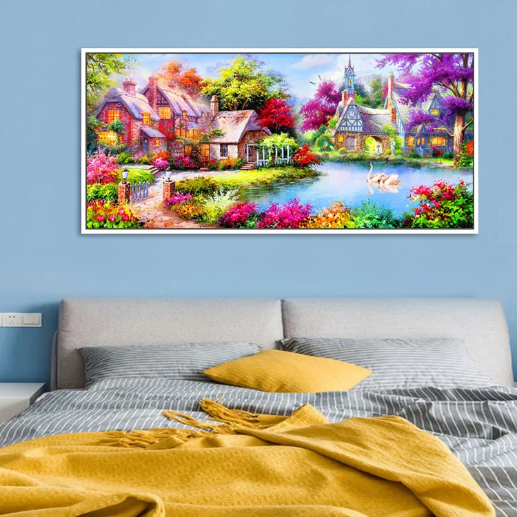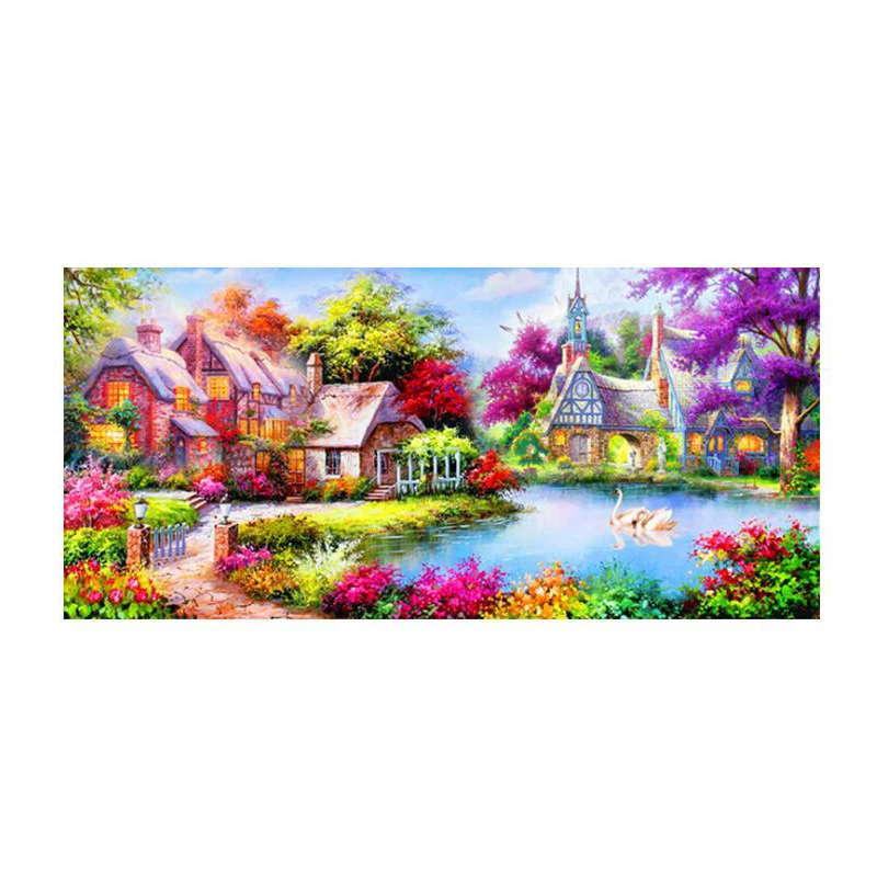 Набор для вышивания крестиком, для гостиной, наборы для вышивания, Полный Набор для вышивания крестиком, шелковая нить, пейзаж с изображением дома и озера
