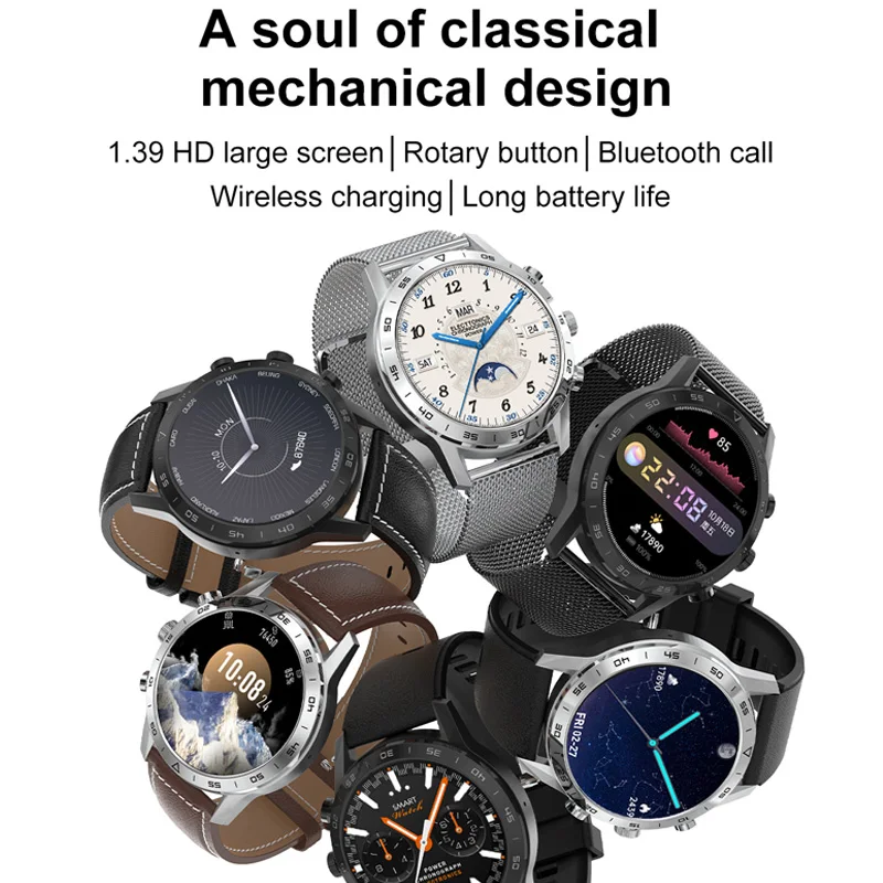Мужские Смарт-часы KK70 с Bluetooth, поворотом и защитой класса IP68, Беспроводная зарядка, воспроизведение музыки, экран 454*454P, 1,39 дюйма