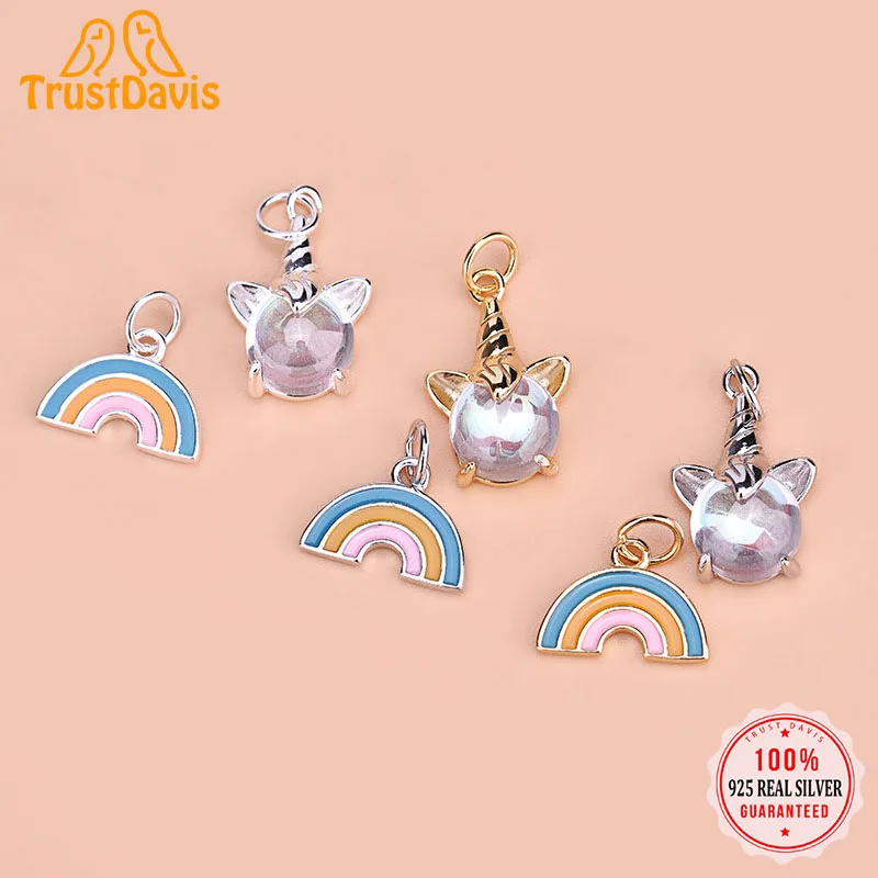 TrustDavis Новый Настоящее 925 стерлингового серебра Радуга амулет в виде единорога кулон собственными руками Сделай Сам аксессуары, хорошая бижутерия ювелирные изделия по оптовым ценам HY017